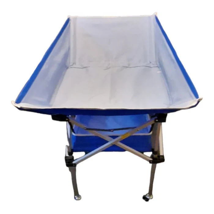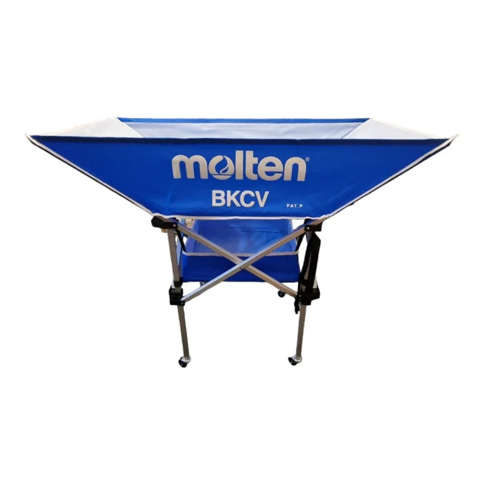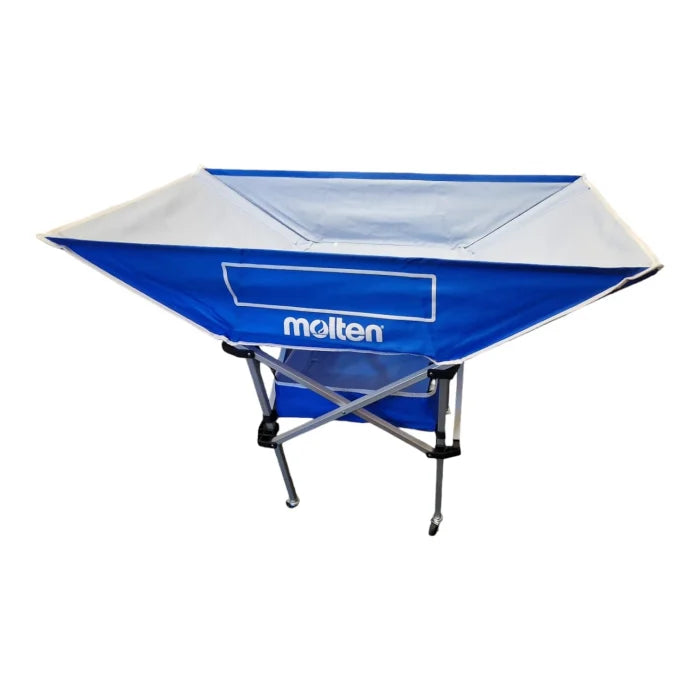 Ball cart, up to 15 balls, funnel shape, Aluminium base, foldable, blue