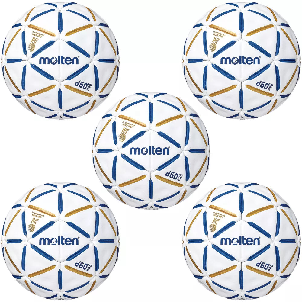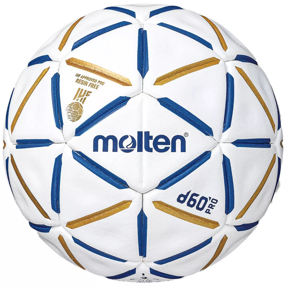 Top Competition ball "d60 PRO" for resin free handball, glued, white/blue/gold; PU-material